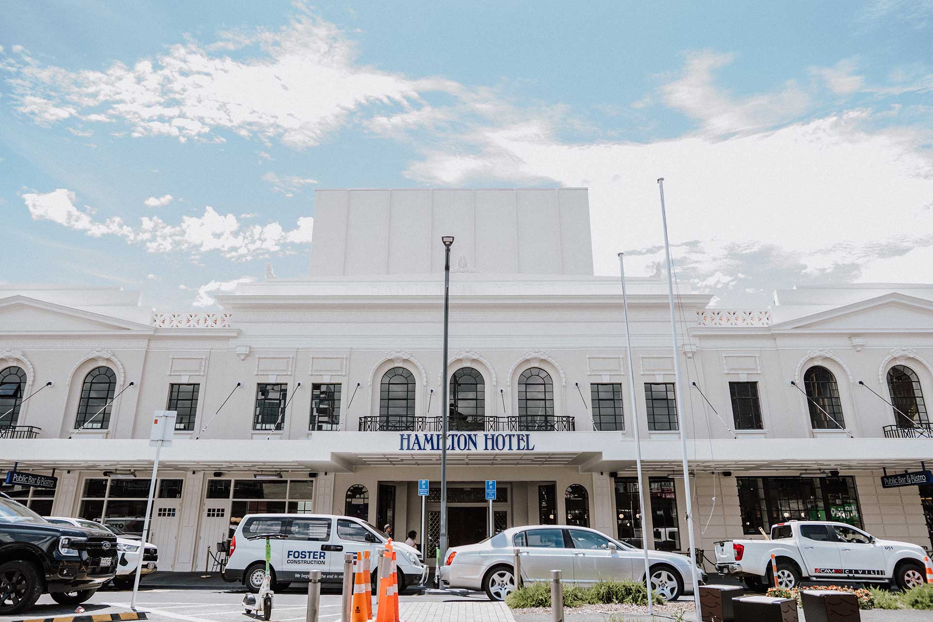 The project also integrates the restored 1923 Hamilton Hotel façade and significant heritage elements, including original timber features and historic joinery.