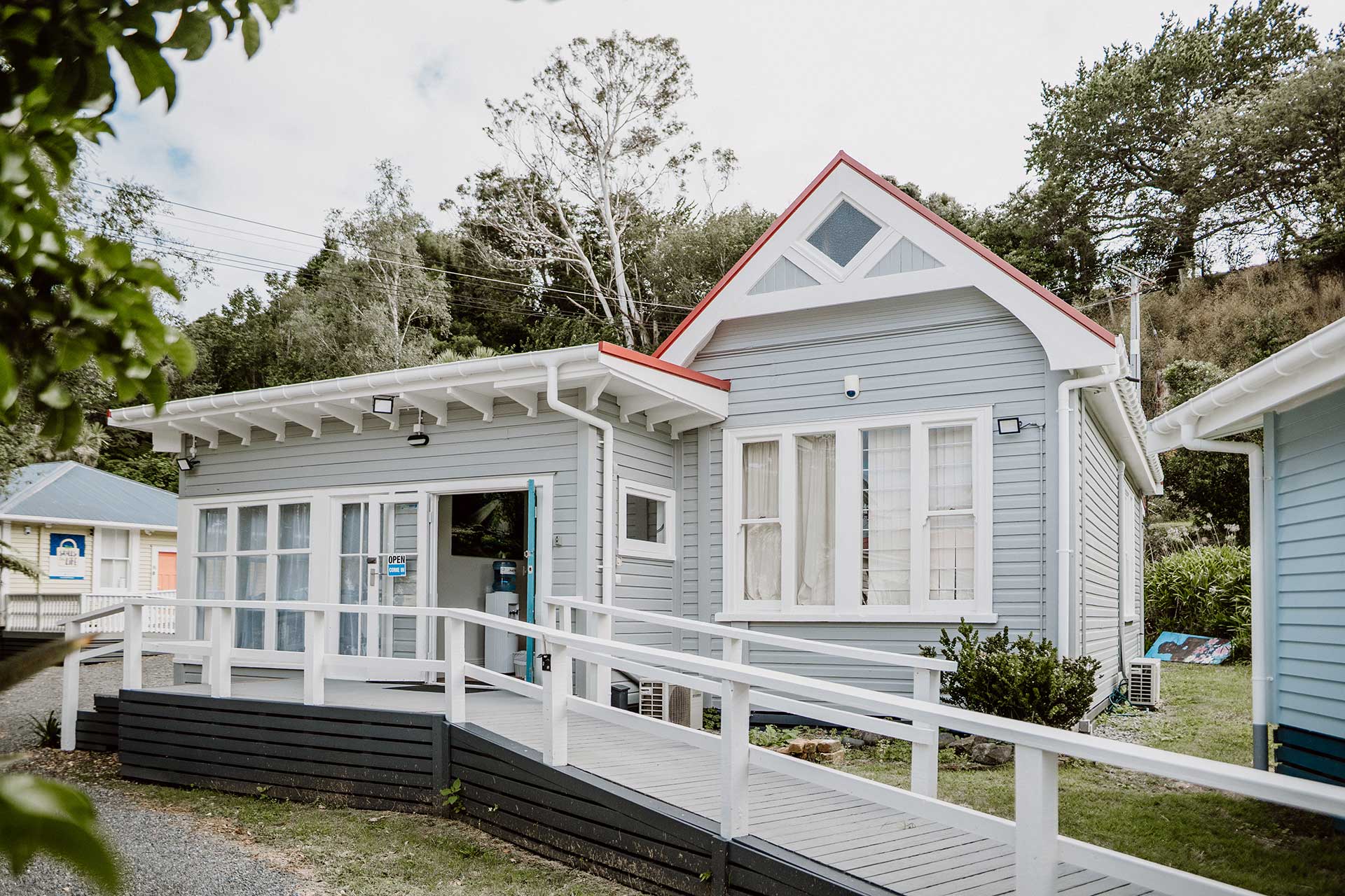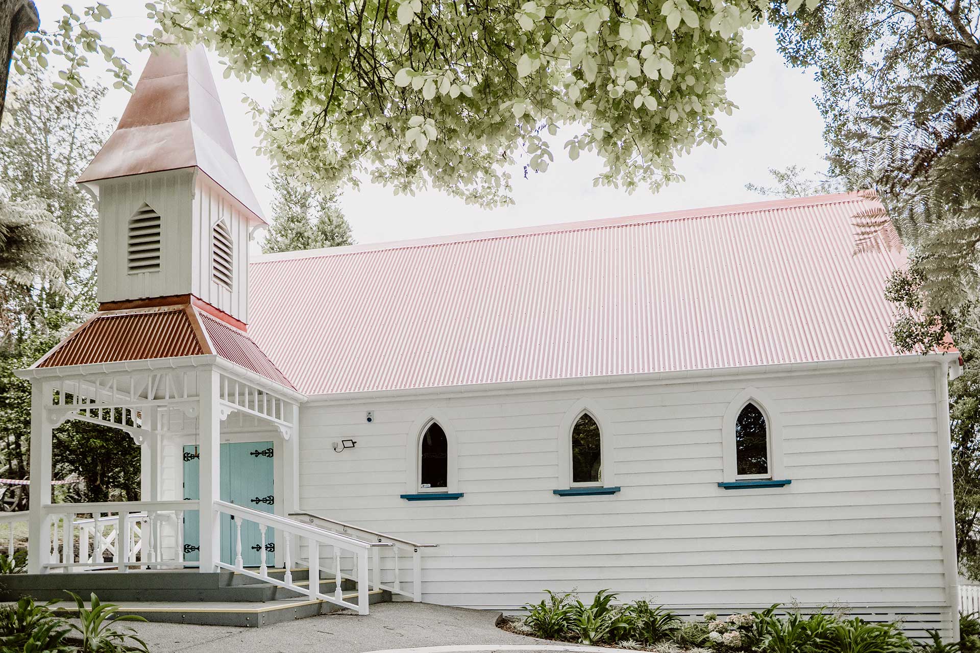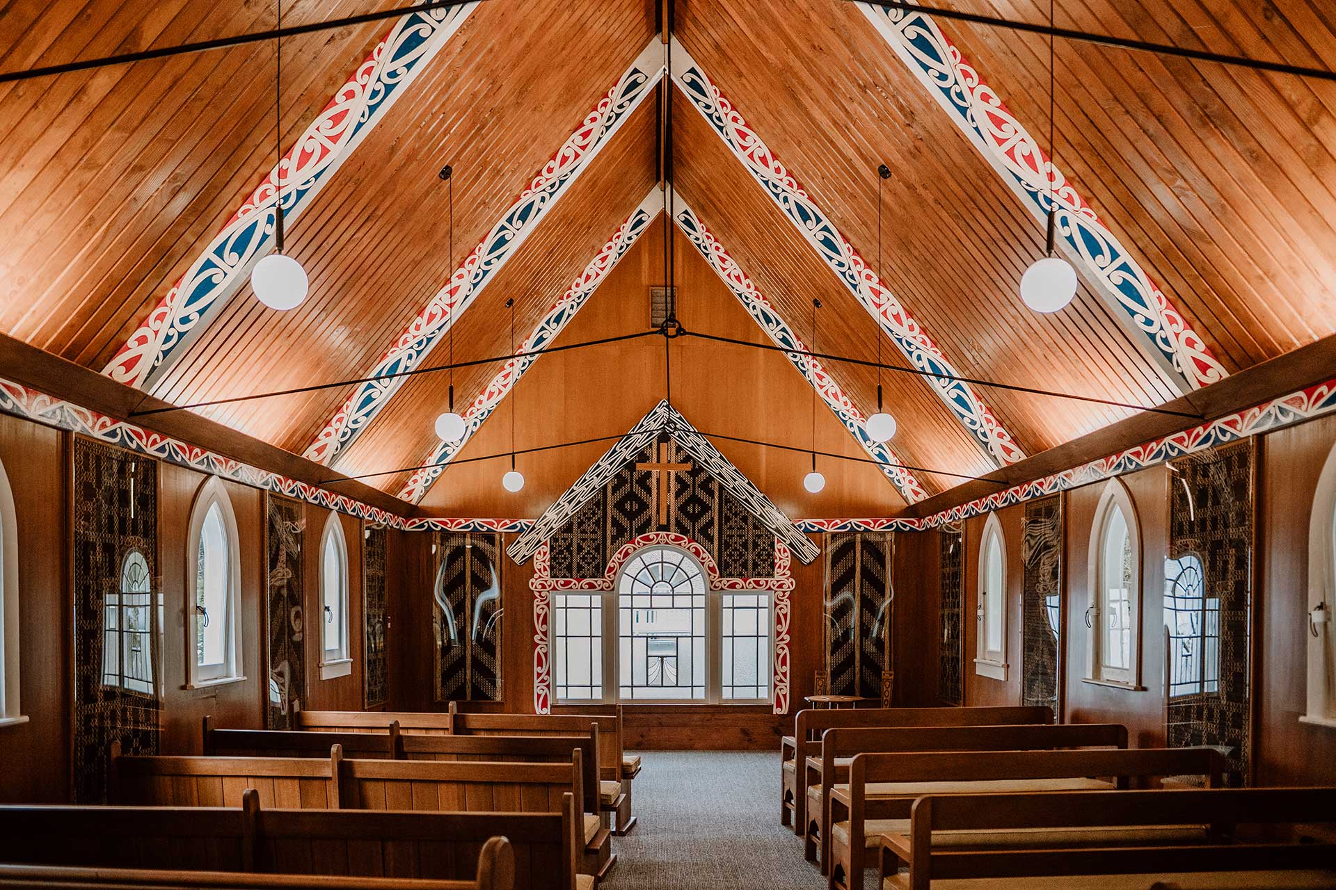 - Specialist restoration works to the Village Chapel, a c.1900 heritage building incorporating significant Māori and Pākehā elements and now widely used as a wedding and event venue. This involved re-piling to correct the sloping floor, extensive reinstatement of the decorative arched window, and seismic stabilisation of the bell tower at the chapel entrance.